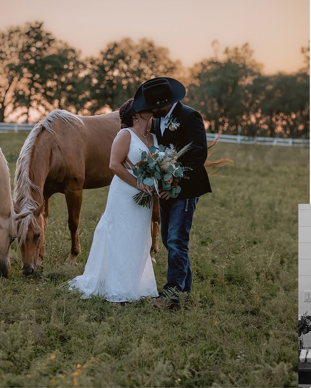 You have access to our beautiful 30 acre horse farm for endless photo ops! However, if you have a Day of Coordinator, she will load the Bride, Groom and the photographer onto our golf cart for a VIP ride to the best spots at sunset - the horses love to be in your pictures! If you want more info about a Day of Coordinator, see our Book + Pricing page!